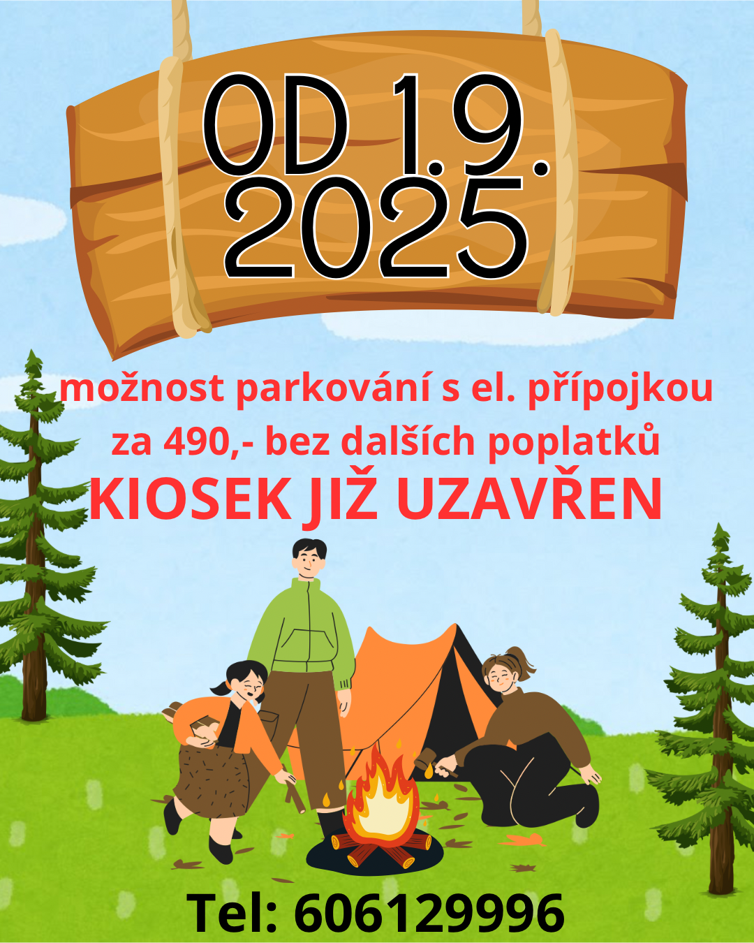 — místa pro stany a karavany není možné rezervovat předem —
